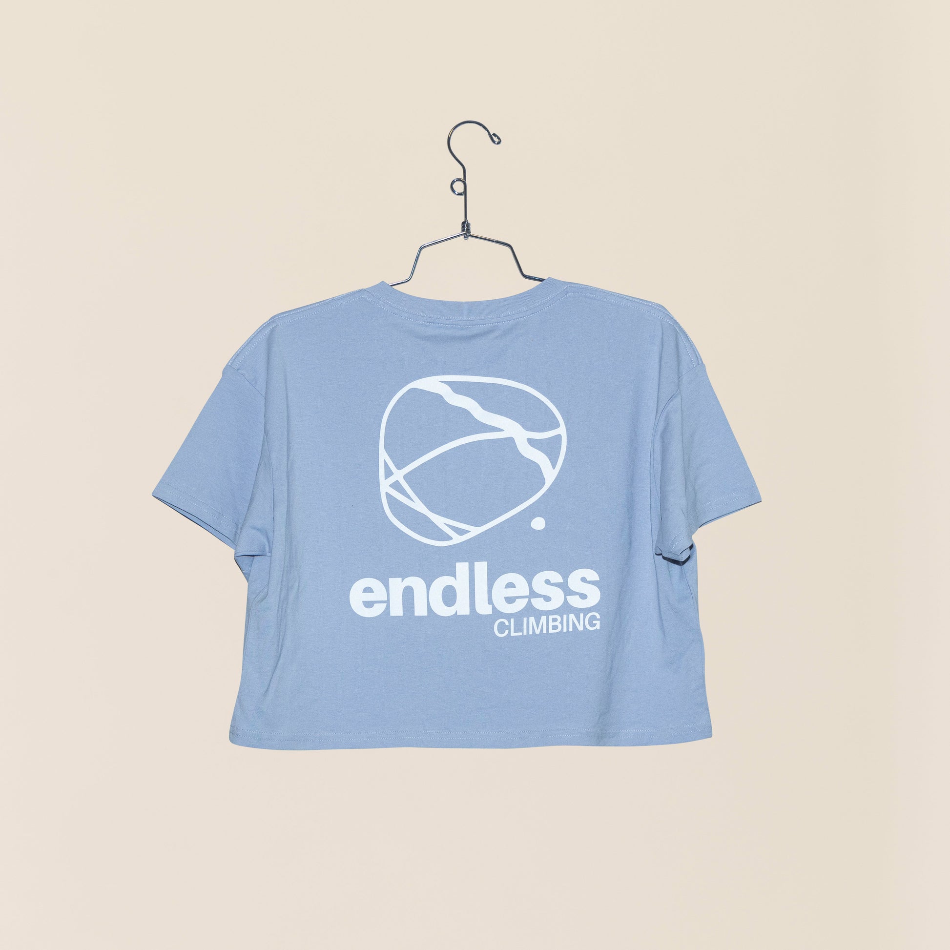 E logo on front, stone logo on back. Powder Blue color, relaxed fit. Screen printed in Colorado.